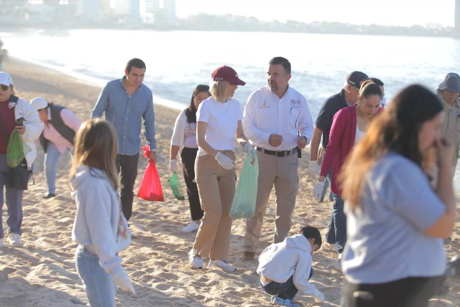 Funcionarios del Gobierno de Mazatlán, instituciones educativas, empresas hoteleras y ciudadanos se unieron para una jornada de limpieza de la playa del Malecón.