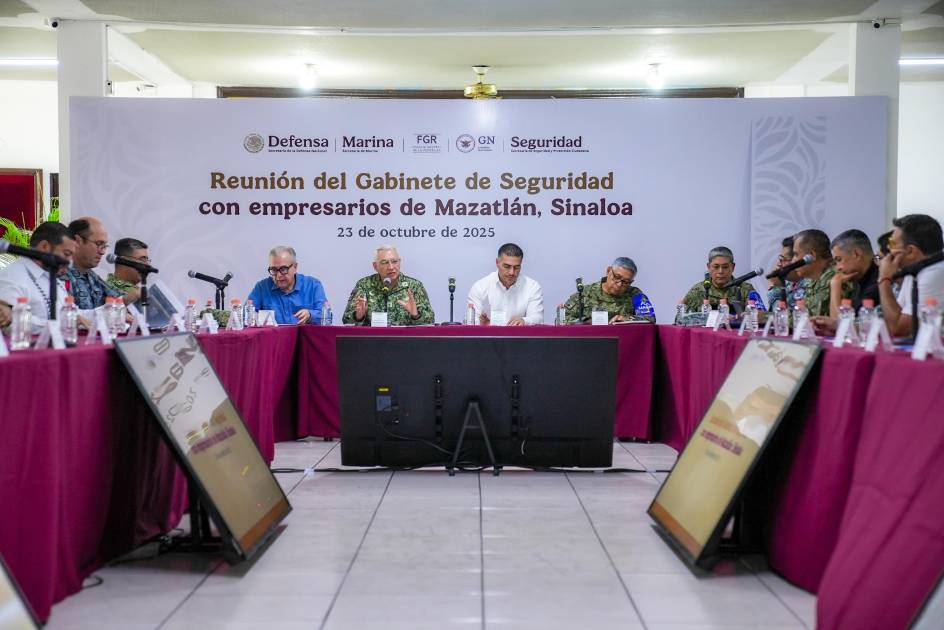 “La primera cuestión es que vino el Gabinete, para nosotros es muy importante porque ese es el compromiso tanto de la Presidencia como del propio Gabinete, de mantener el operativo completo, incluso particularmente el Secretario Trevilla dijo que va a incrementar la presencia de efectivos en Mazatlán, ya lo hizo el Secretario García Harfuch, mandó 250 elementos”, dijo a conocer públicamente el Gobernador del estado, Rubén Rocha Moya, tras la reunión realizada en las instalaciones de la Tercera Región Militar.