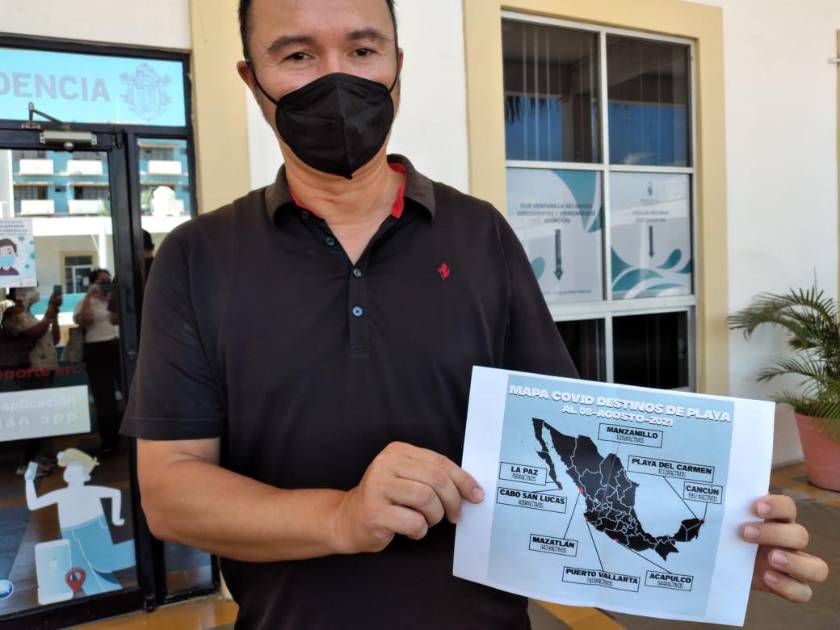 En una gráfica que mostró Manguart Sánchez del Mapa Covid Destinos de Playa al 8 de agosto de 2021, que no tiene fuente de información, se muestran ocho ciudades turísticas con el número de casos activos de Covid-19.