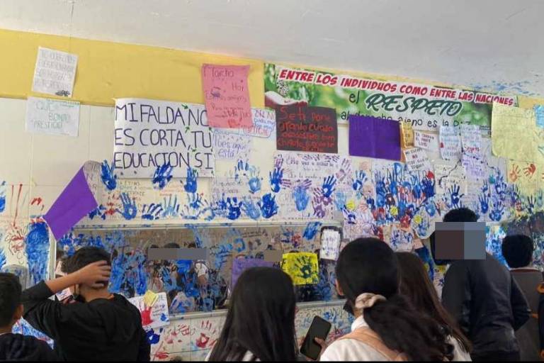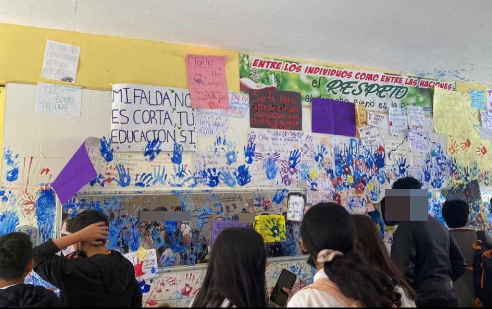 De acuerdo a videos y fotos que circulan en redes sociales, las alumnas se manifestaron esta mañana tanto dentro de los salones como en la explanada y los pasillos.