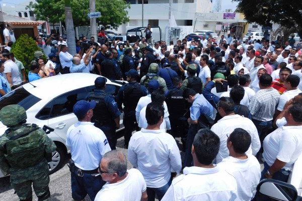 También arribaron elementos de la Policía Municipal para estar pendientes de la situación, en tanto que inspectores de Vialidad y Transportes del Gobierno del Estado se mantenían cerca en espera de instrucciones de sus superiores.