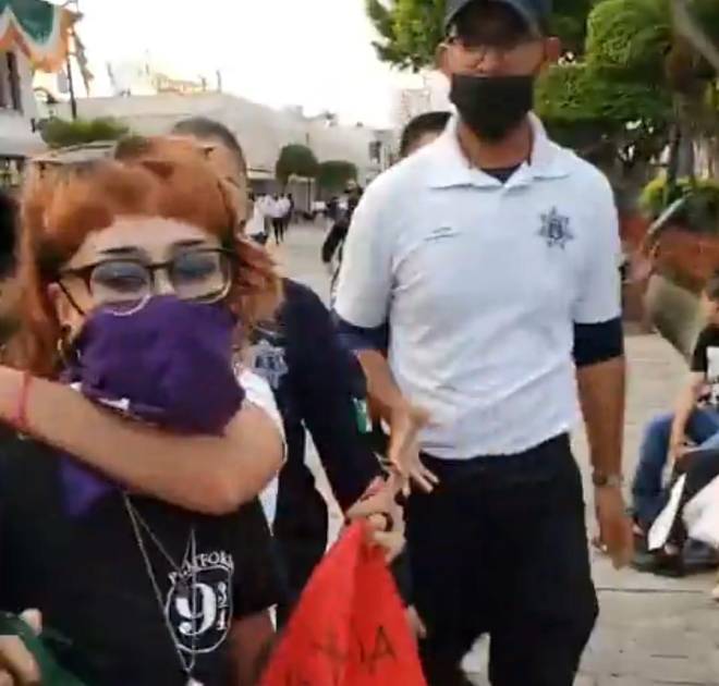 Dos menores de edad fueron violentadas por elementos de la Policía Municipal que resguardan los alrededores del Palacio Municipal, durante una protesta de activistas feministas por la violencia que viven en Sinaloa.