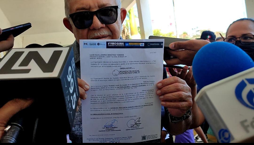 El Alcalde dijo que fue invitado a Francia porque Mazatlán fue una de las 30 ciudades reconocidas con más desarrollo en el mundo, según él, lo cual es muestra del trabajo que ha hecho en Mazatlán.
