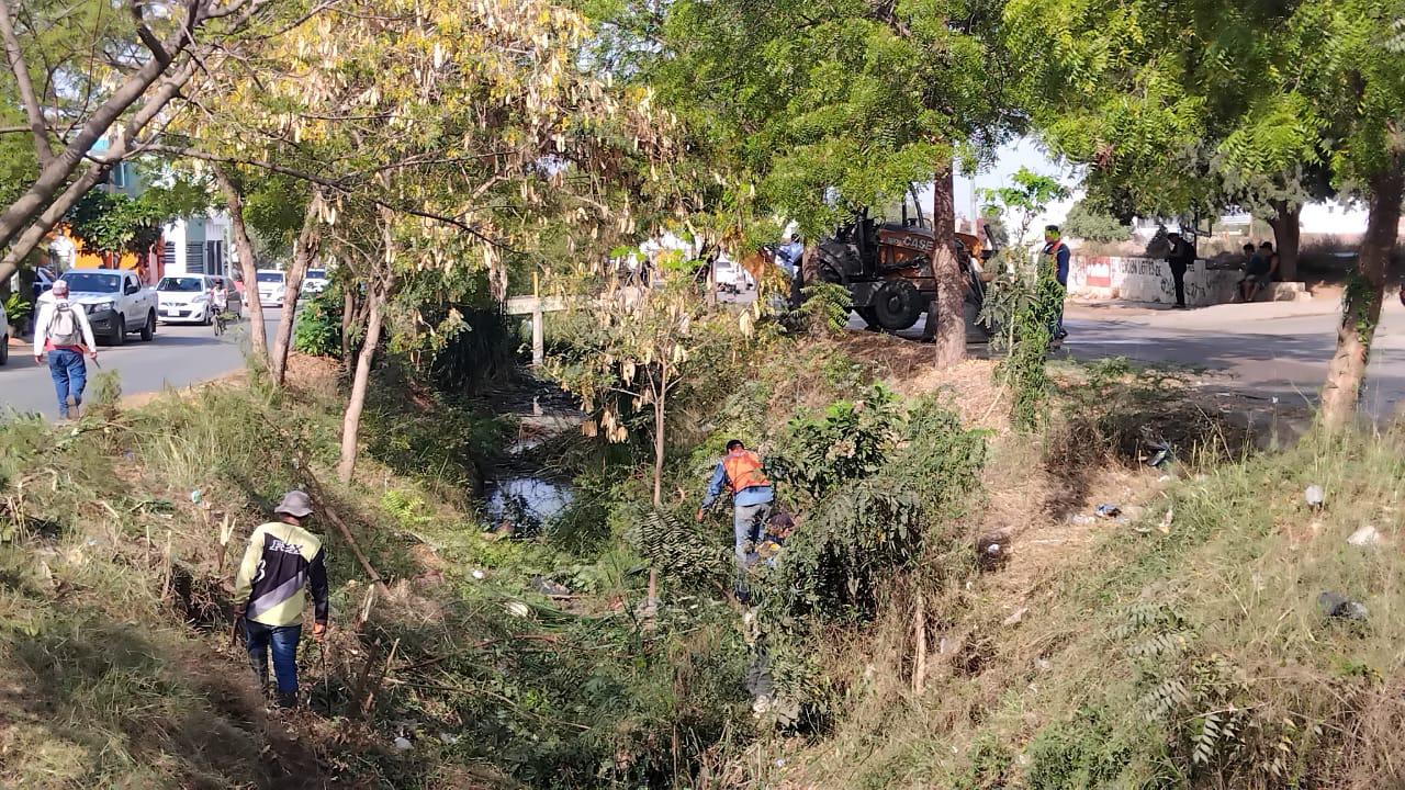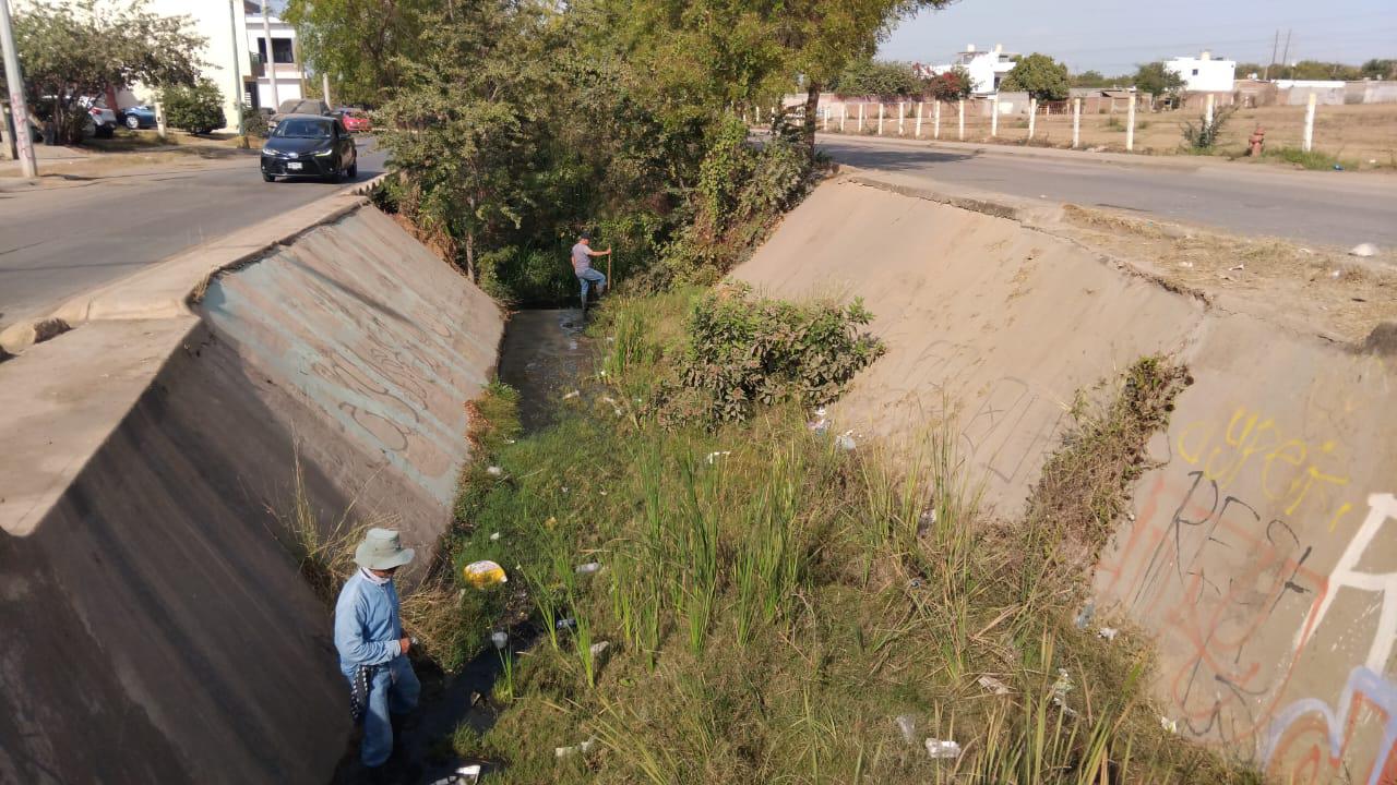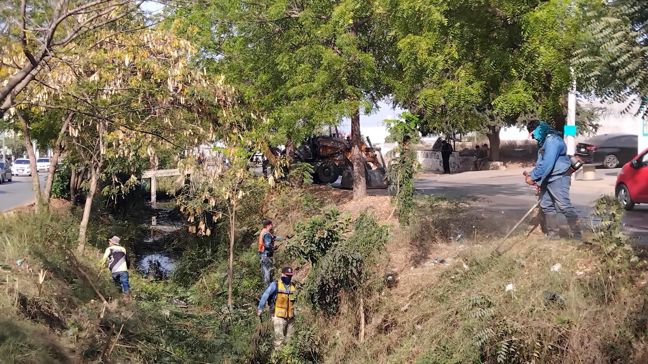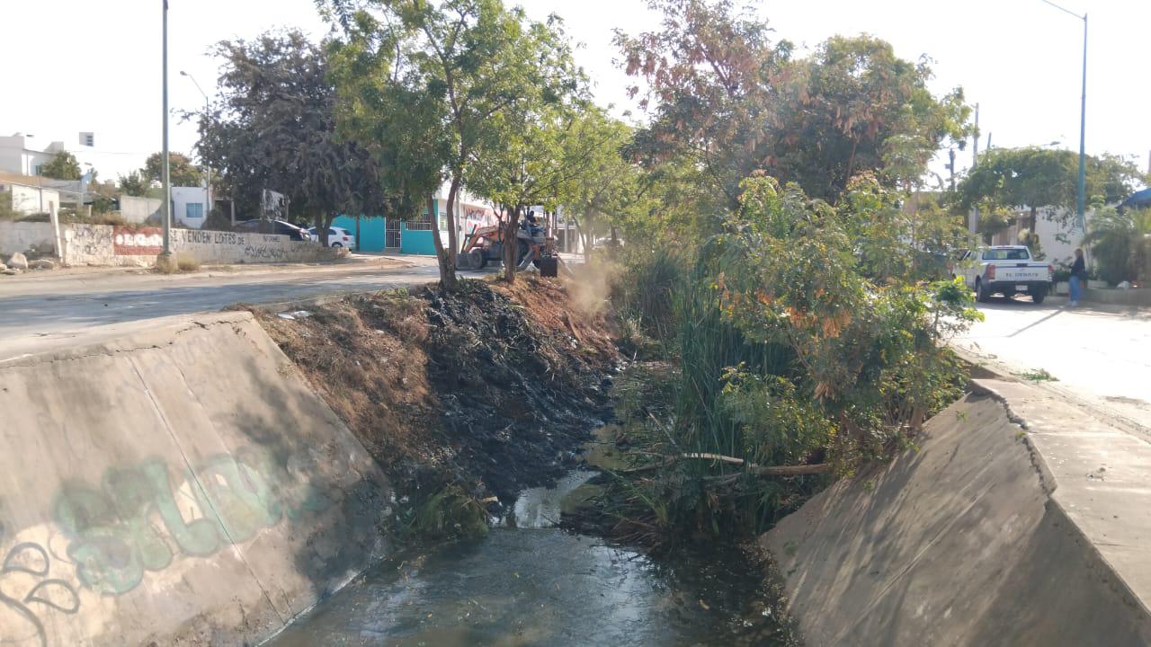 Los trabajos de limpieza de dicho canal pluvial los realiza personal del Ayuntamiento de Mazatlán con apoyo de una maquinaria y con machetes y otras herramientas para que ese cuerpo de agua permita la fluidez del agua en la temporada de lluvias y se prevengan problemas de inundaciones.
