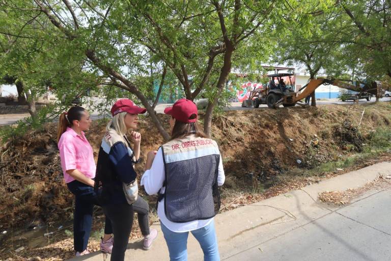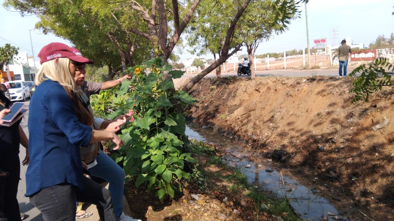 Alcaldesa de Mazatlán supervisa limpieza de canal en la Colonia Rincón de Urías