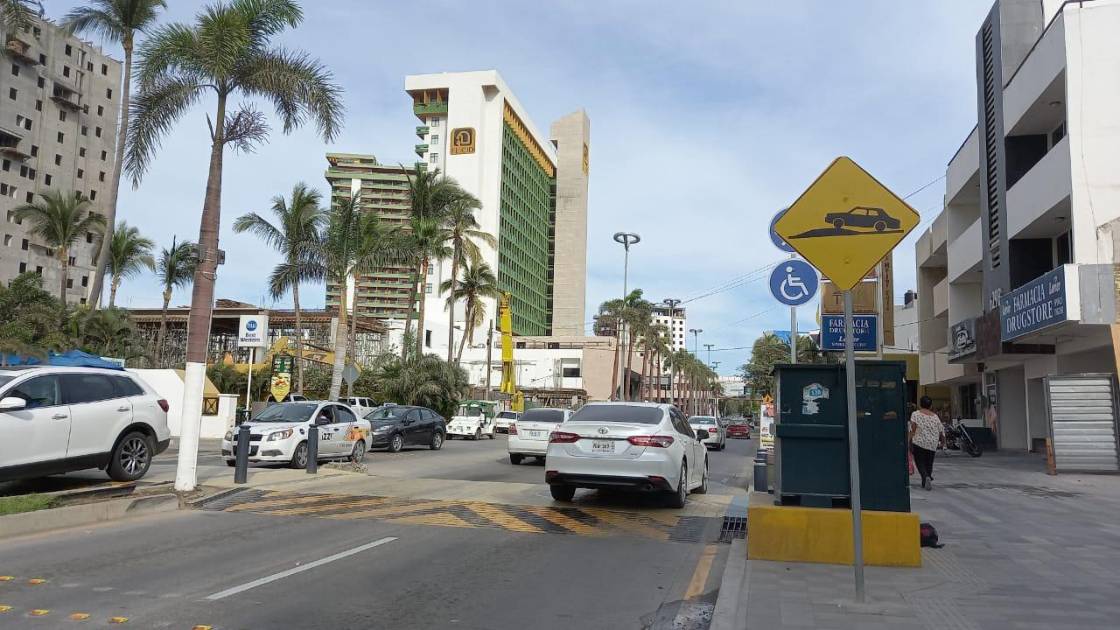 Antes y después del paso peatonal en Mazatlán, ubicado en la Zona Dorada, se ven marcas de frenos en el lugar, lo cual es señal de que los conductores aún no se acostumbran a estos reductores de velocidad.