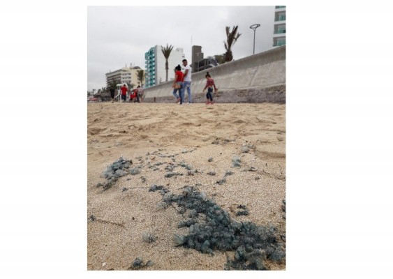 "Esta mañana se apreció una gran cantidad de esta especie marina en Playa Norte, por lo que los bañistas evitan ingresar al mar para no ser afectados"