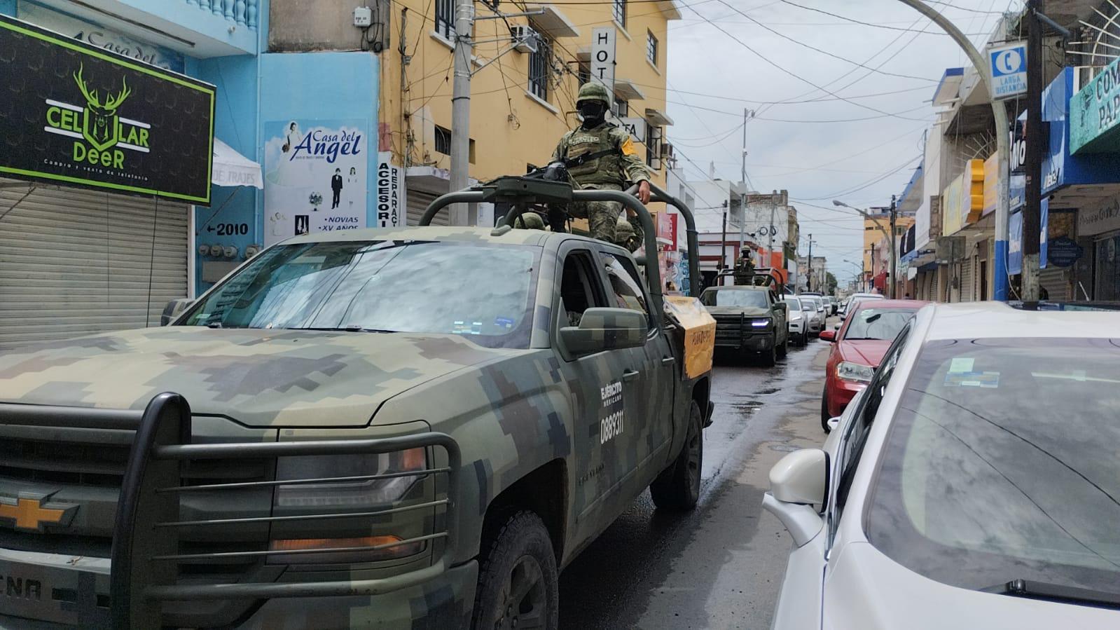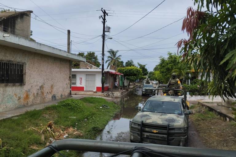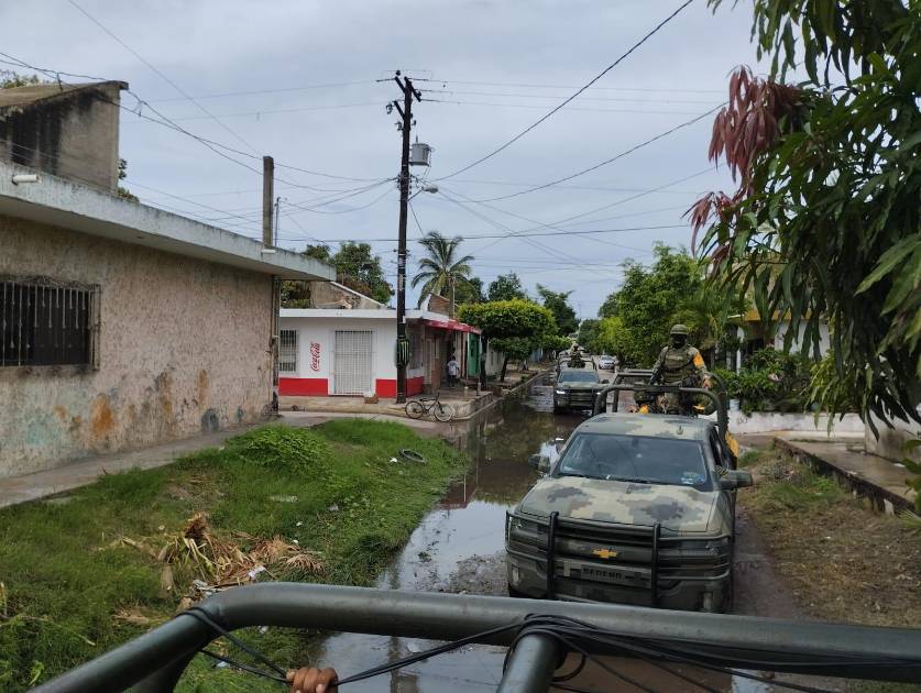 A bordo de sus vehículos, los militares realizaron recorridos por las colonias Independencia, Centro, Estero y Zapata listos para ayudar a la población afectada por la lluvia.