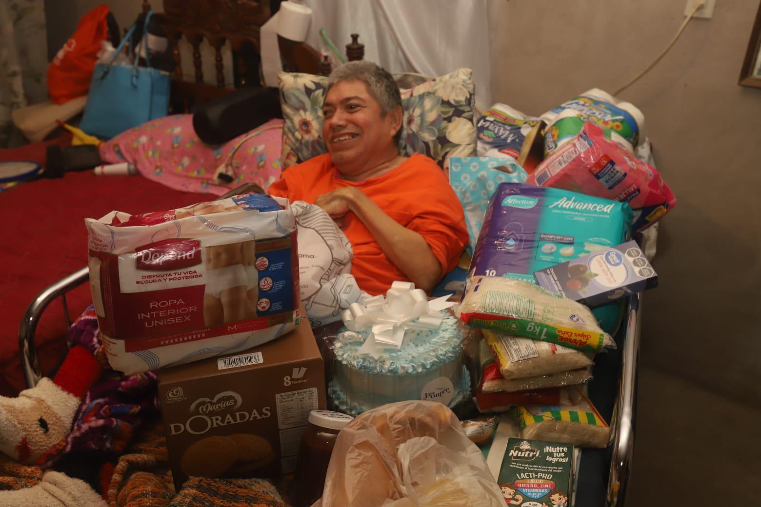 Ella solicita apoyo de productos de la canasta básica para su alimentación y algunos medicamentos para su hijo como Picosulfato Sódico, Carbamazepina y Fenitoina Sodica, así como pañales con elástico de adulto.