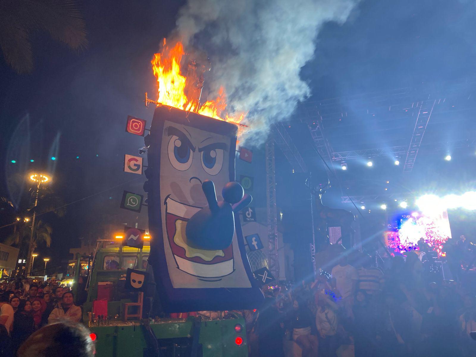 Para el presente Carnaval, Los Bolcheviques, el grupo del Instituto de Cultura, Turismo y Arte de Mazatlán que decide tradicionalmente qué figura arderá, determinó que fuera la de un celular en representación de los servicios de este tipo de telefonía.