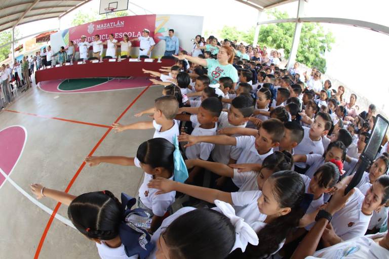 Miles de niños, niñas y jóvenes de primaria, secundaria y preparatoria iniciaron un nuevo ciclo escolar este lunes por la mañana con ilusiones renovadas, como los estudiantes de la Escuela Primaria Estatal “Renato Vega Amador”, donde se celebró el Lunes Cívico con las autoridades del Ayuntamiento de Mazatlán.