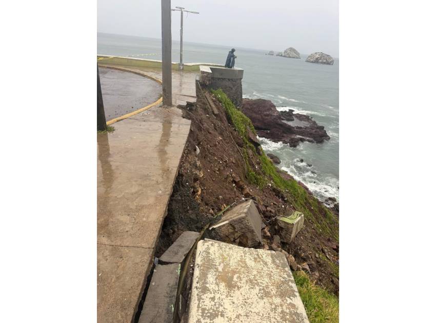 Arranca Obras Públicas reparación del muro de contención dañado en Paseo del Centenario, en Mazatlán
