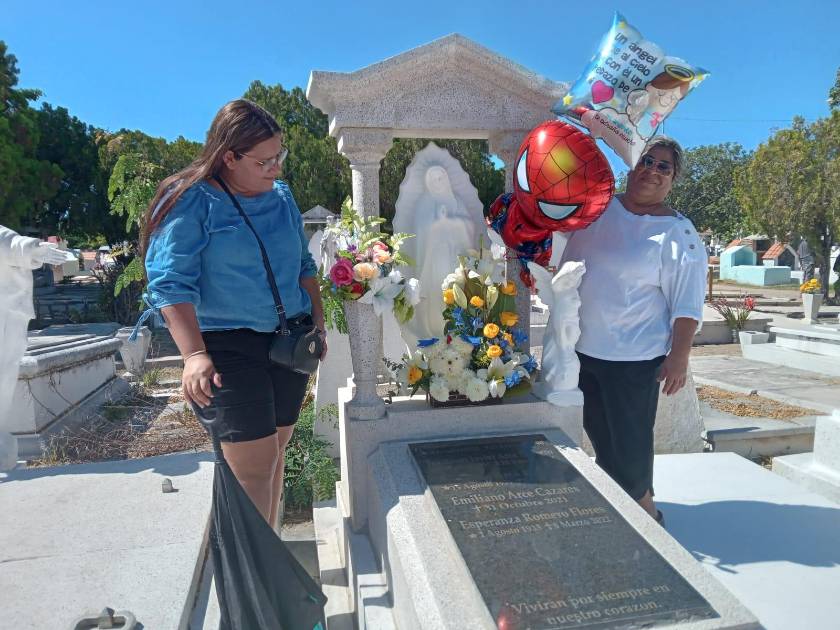 “Ayer (lunes) cumplió un año de que falleció, vino mi nuera y ahora vino su abuela a visitarlo y le trajimos el arreglito ese de perrito y ahorita los globos del Hombre Araña y venimos también a visitar a mi mamá”, contó Cecilia Arce.