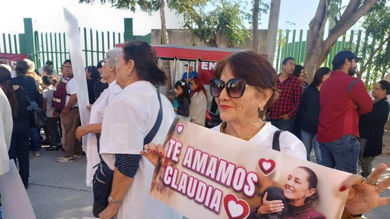 Recibida con música de banda y aplausos, la Mandataria llegó cerca de las 11:50 horas al recinto deportivo acompañada del Gobernador de Sinaloa, Rubén Rocha Moya, entre otros.