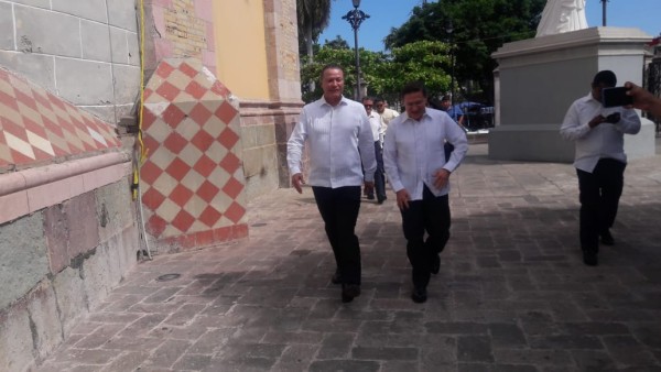 MAZATLÁN._ Los gobernadores de Sinaloa y Durango, Quirino Ordaz Coppel y José Rosas Aispuro Torres, respectivamente, asisten a la misa de cuerpo presente en memoria del ex Gobernador sinaloense, Antonio Toledo Corro.