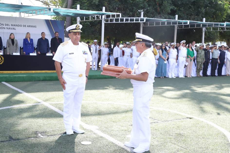 “A lo largo de este tiempo tuve la oportunidad de constatar en cada operación, comisión y actividad cotidiana el alto sentido del deber, la disciplina y el profesionalismo que distinguen a los hombres y mujeres que integran la Cuarta Región Naval, su entrega, su lealtad institucional y su vocación de servicio fueron pilares fundamentales para el cumplimiento de las misiones encomendadas y para mantener siempre el prestigio de nuestra institución”, recalcó el vicealmirante Reséndiz Sandoval.