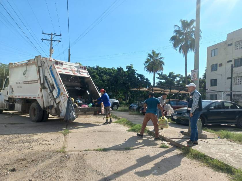 Brigadas de limpieza atienden denuncia de vecinos del fraccionamiento El Toro, colocando horarios para que saquen la basura.
