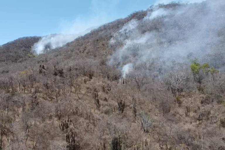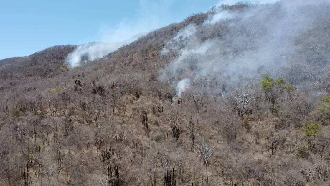 “Nosotros esta semana atendimos la comunidad del Moral, que si bajó el incendio a una parte donde podíamos acceder, a donde pudimos hacer una una serie de ‘guardarrayas’ para que el fuego ya no caminara más, logramos contenerlo ahí, pero el incendio sigue en las copas de los cerros, son lugares donde no podemos llegar”, precisó.