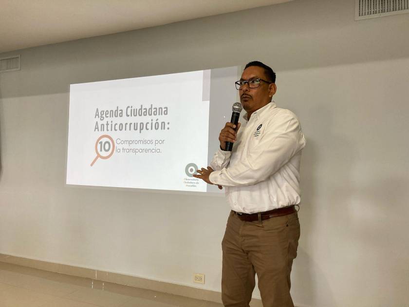 En el evento realizado en el auditorio de la Canacintra Mazatlán, Rojo Navarro recordó que la Agenda Ciudadana Anticorrupción, que consta de 10 puntos, un proyecto único en su tipo en Sinaloa, fue aceptada en noviembre del 2022 por el Gobierno Municipal y firmada firmada por el Alcalde Édgar Augusto González Zataráin, sin embargo, su implementación inició en enero del 2023.
