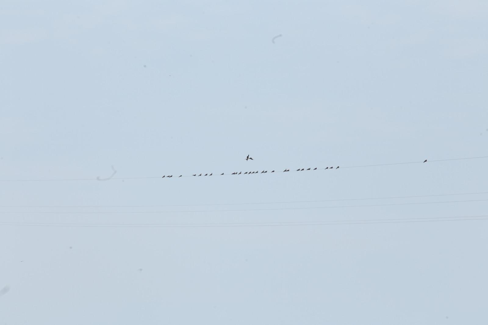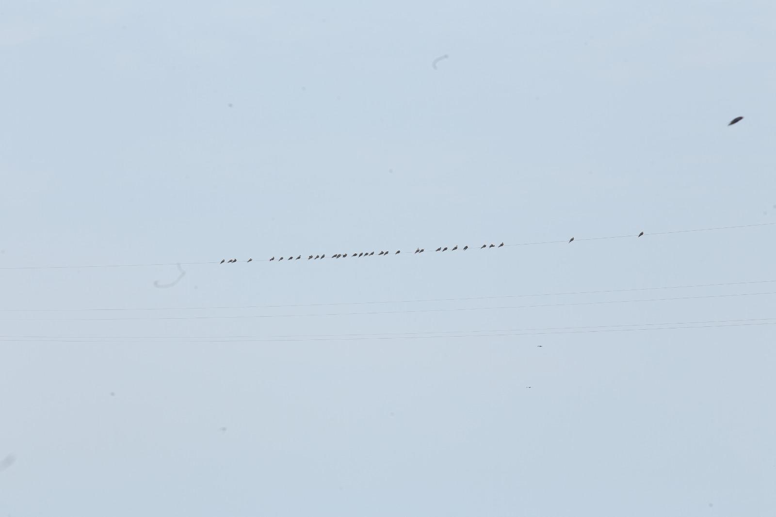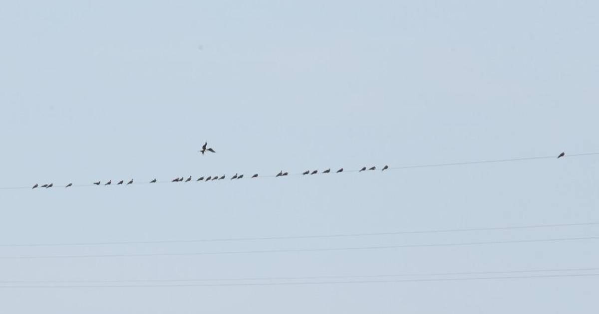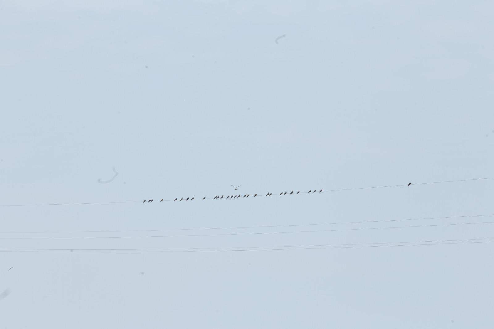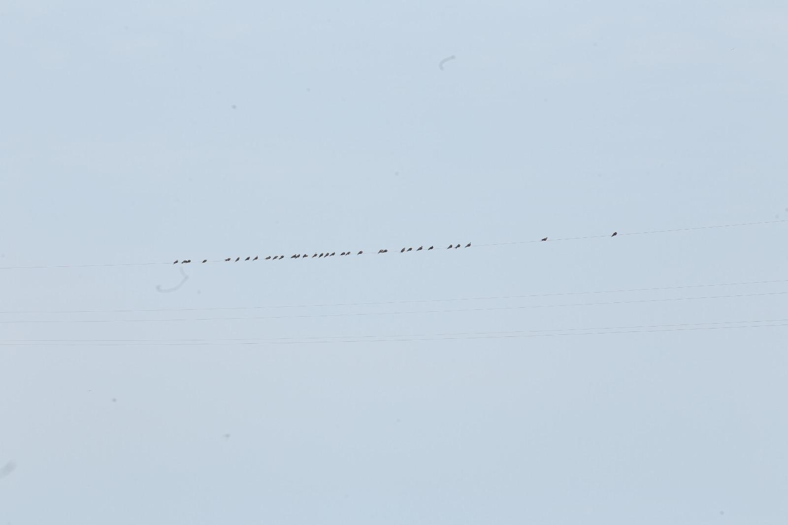 Este sábado al menos 37 aves se encontraban paradas sobre uno de los cinco cables ya instalados de la tirolesa.