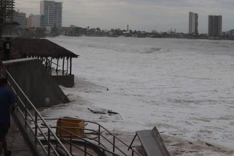 El paso de este fenómeno sobre las costas del puerto dejó una imagen peculiar donde se podía apreciar espuma, mobiliario arrastrado y estructuras dañadas por la fuerza con la que el agua golpeó las playas mazatlecas.