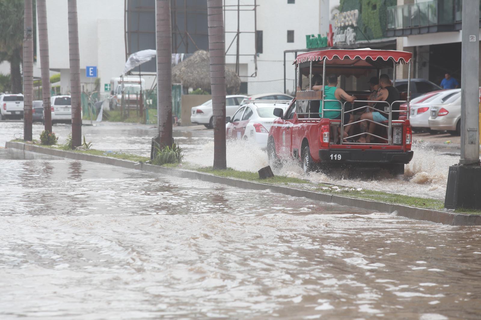 MAZATLÁN._ Nuevamente la Zona Dorada vuelve a estar bajo el agua en Mazatlán, tras las precipitaciones registradas la mañana de este sábado.