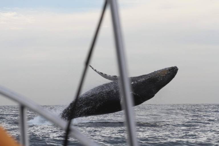 Al menos a siete millas náuticas, pocos han podido apreciar un espectáculo que la ballena jorobada realiza todos los días entre diciembre y marzo.