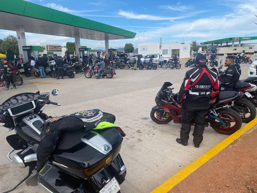 Bikers llenan gasolinera para cargar la gota antes de arribar a Mazatlán