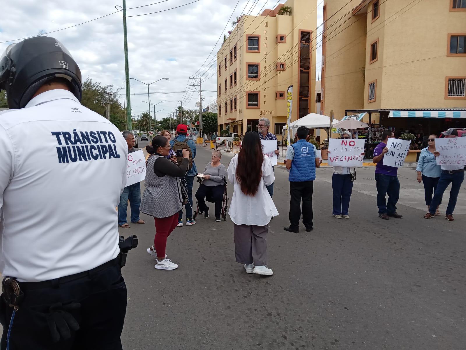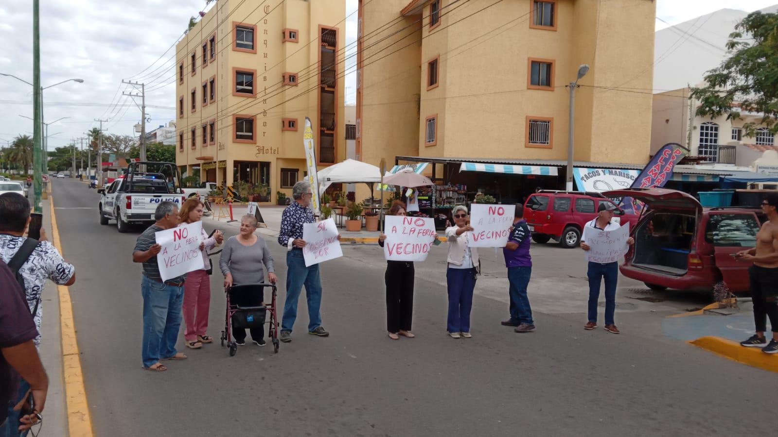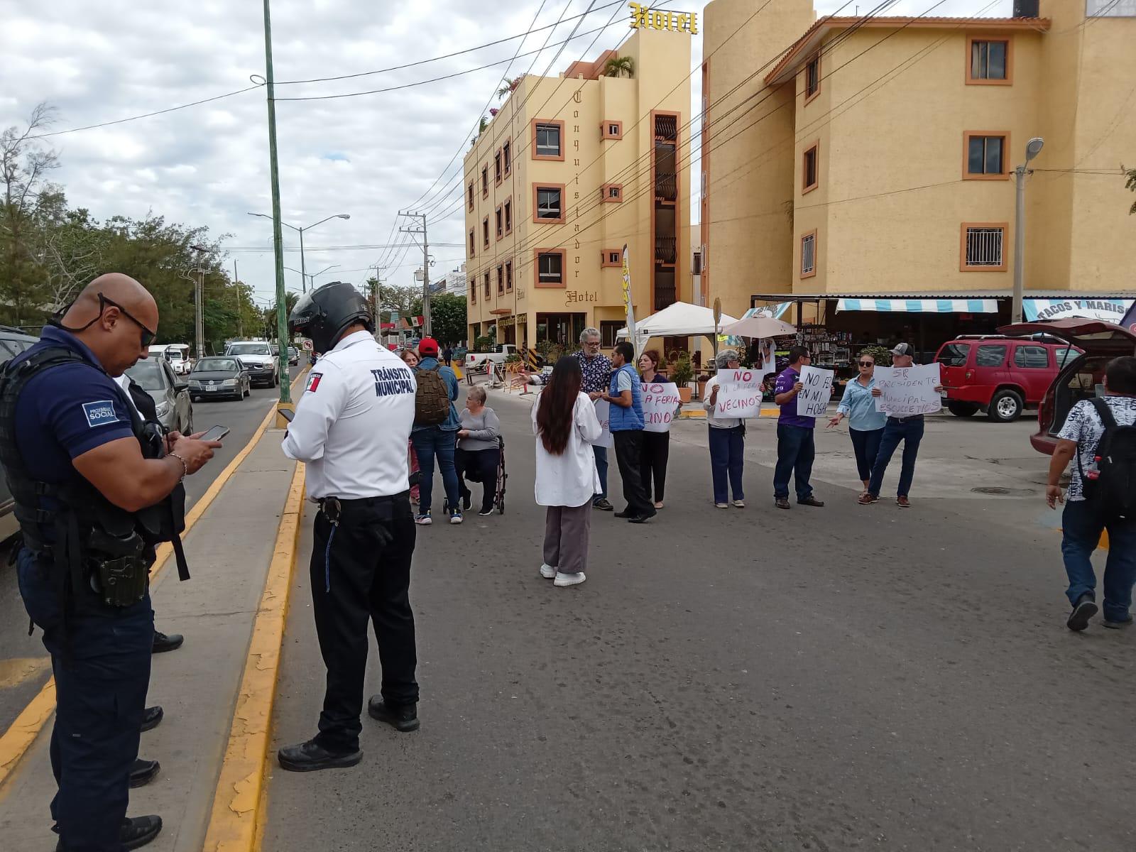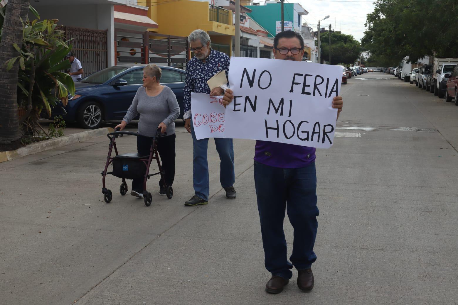 MAZATLÁN._Vecinos del Fraccionamiento Tellerías se manifestaron de manera pacífica contra la Feria del Carnaval, la mañana de este viernes, la cual se instaló en el estacionamiento que está enfrente del Acuario de Mazatlán.