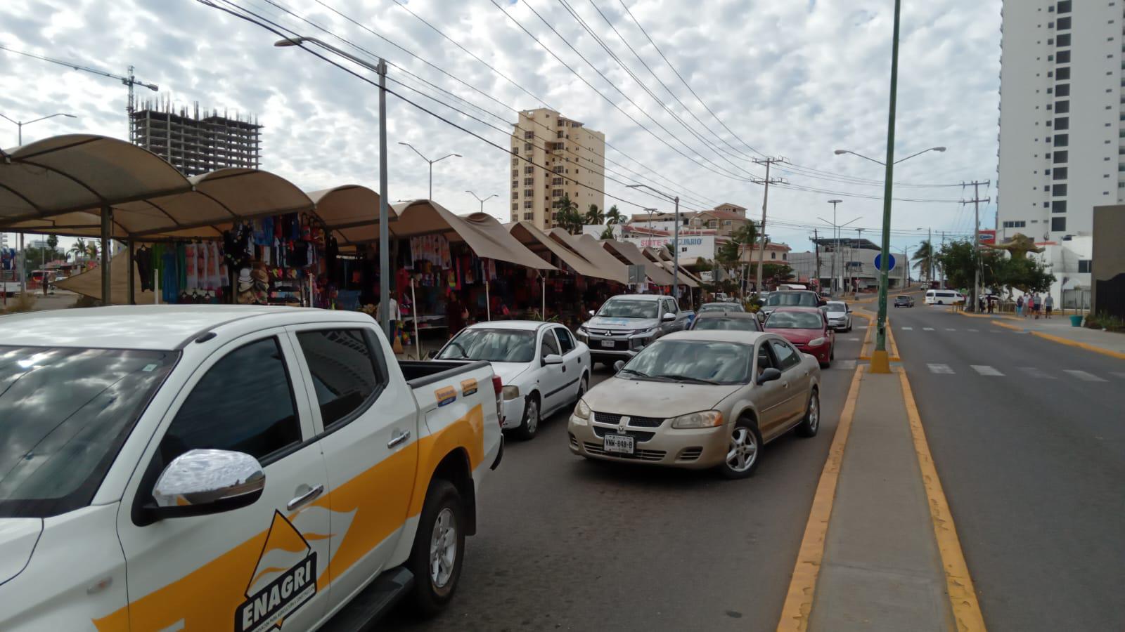 Una decena de habitantes del fraccionamiento que colinda con el Malecón de Mazatlán y el Acuario Mar de Cortés, bloquearon desde las 10:00 horas la Avenida de Los Deportes a su cruce con Río Quelite.