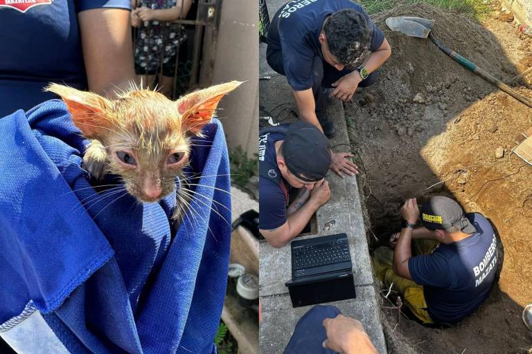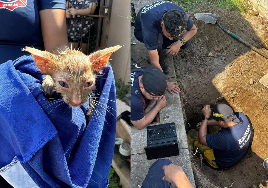 MAZATLÁN._ Con paciencia, precisión y trabajo en equipo, elementos del Cuerpo de Bomberos Voluntarios de Mazatlán lograron rescatar a dos gatitos que permanecieron atrapados durante casi dos días en una tubería pluvial, en el fraccionamiento La Rivera.