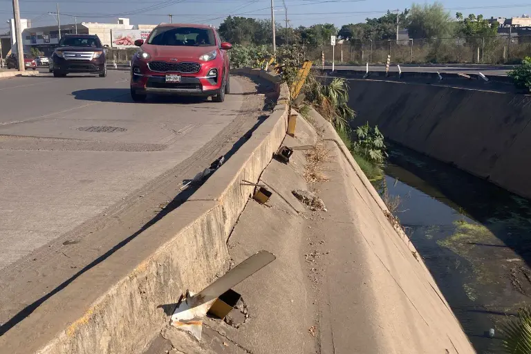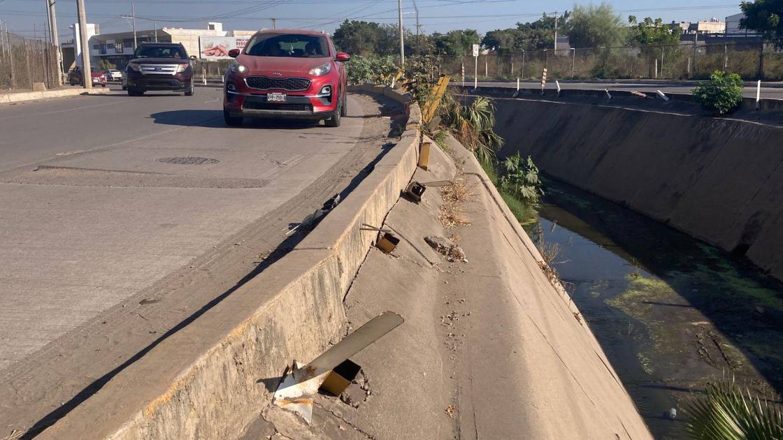 En un recorrido realizado por Noroeste este domingo, se pudo ver cómo las guarniciones que separan la calle del cauce no cuentan con protección para detener a los carros en caso de algún derrape.