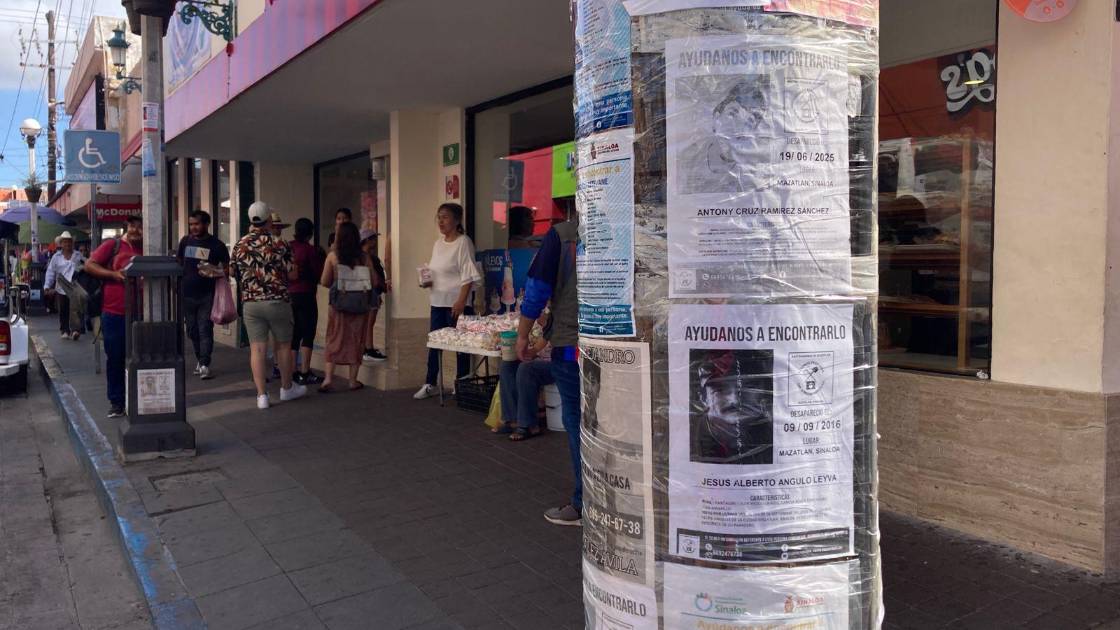 Carteles con fichas de desaparecidos inundan el Centro de Mazatlán