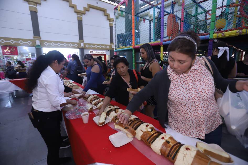 “Ya tenemos muchos años realizando este evento, y esta es una rosca elaborada por nuestro personal y es la misma que vendemos en nuestras sucursales; hoy les regalamos una rebana y un vaso de chocolate”, comentó.