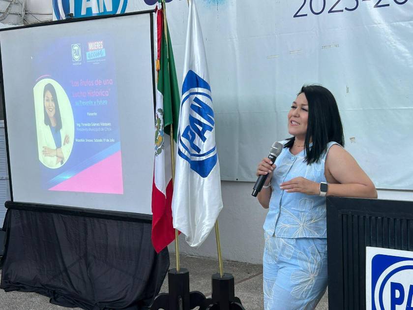 MAZATLÁN._ Como parte de la conmemoración del 70 aniversario del voto de la mujer en elecciones federales en México, el comité municipal del Partido Acción Nacional en Mazatlán llevó a cabo la conferencia “Los Frutos de una Lucha Histórica: su Presente y Futuro”, a cargo de Joaneida Gámez Vázquez, actual Alcaldesa de Choix.