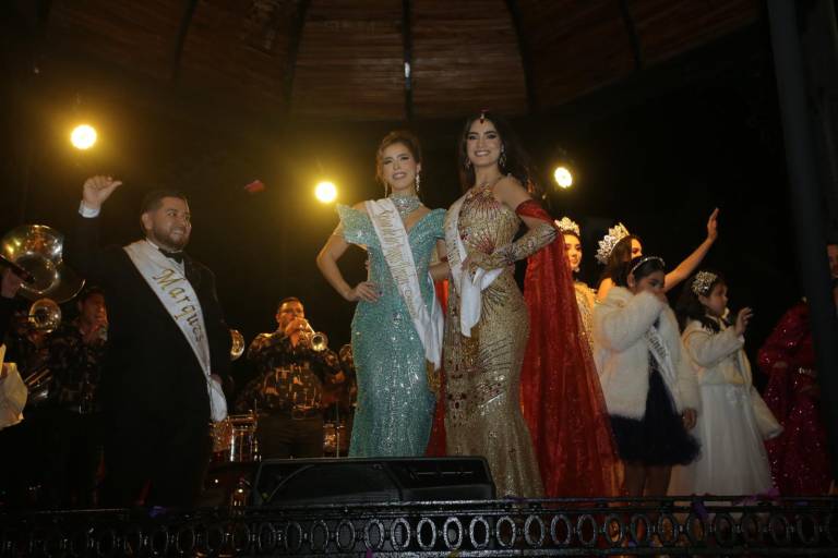 En puntos de las 21:10 horas, el quiosco de la Machado se iluminó para la presentación oficial de Anahí y Mariana, acompañadas por todas las princesas reales de esta edición, así como el nuevo Rey de la Alegría 2026, Javier Osuna “El Chiras”, y la Reina Infantil, Eileen Cruz.