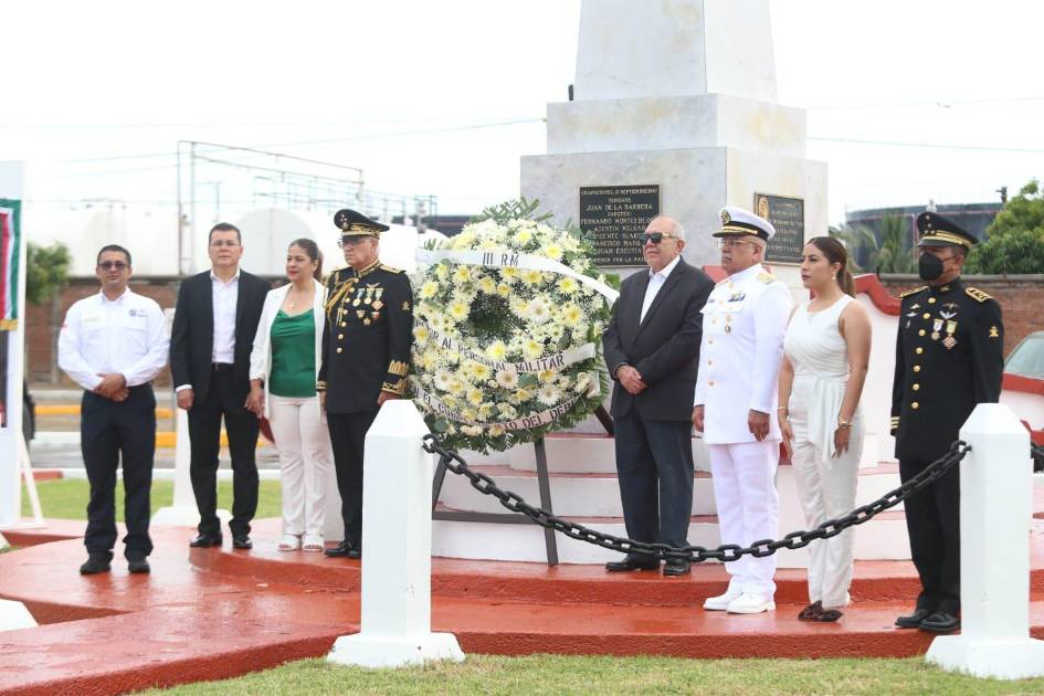 Autoridades civiles y militares depositaron una ofrenda floral en memoria de los Niños Héroes y montaron una guardia de honor.