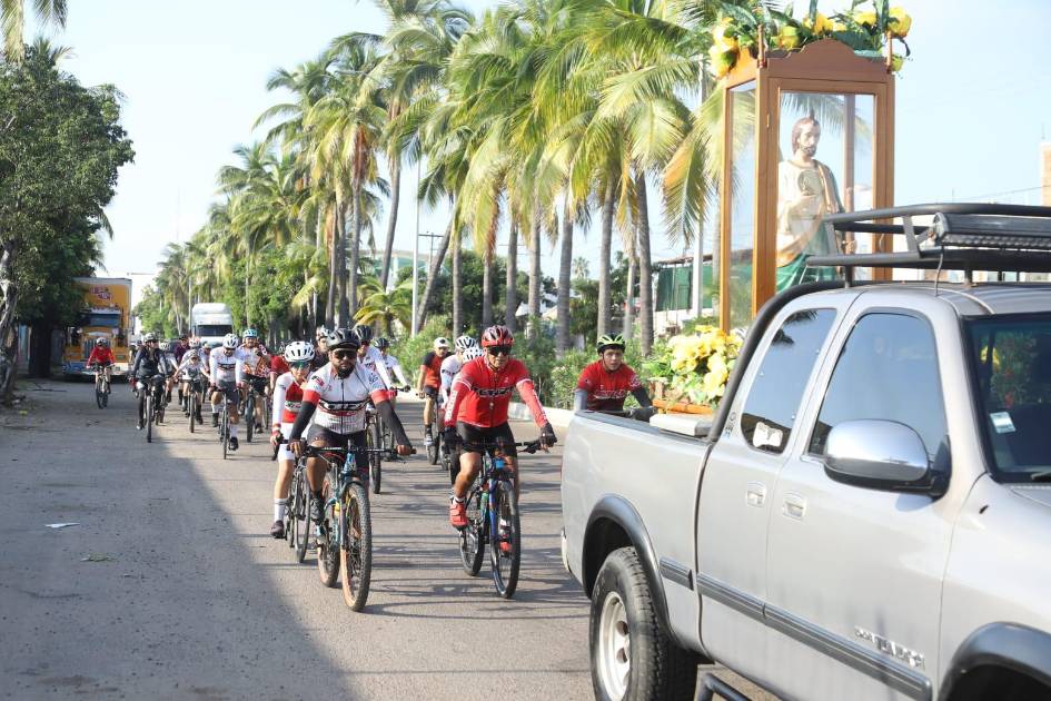 MAZATLÁN._ Con espíritu, devoción y convivencia familiar, alrededor de 40 ciclistas de distintos clubes de Mazatlán participaron en la “Peregrinación de Familias Ciclistas” en honor a San Judas Tadeo.
