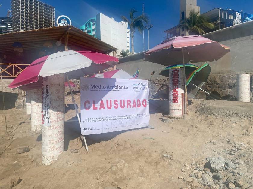 MAZATLÁN._ Al igual que lo hicieron autoridades Municipales un día antes, la Procuraduría Federal de Protección al Ambiente (Profepa) realizó este lunes la suspensión de una obra de construcción de palapas que se estaban llevando a cabo en las playas de Mazatlán, tras no contar con la autorización necesaria.