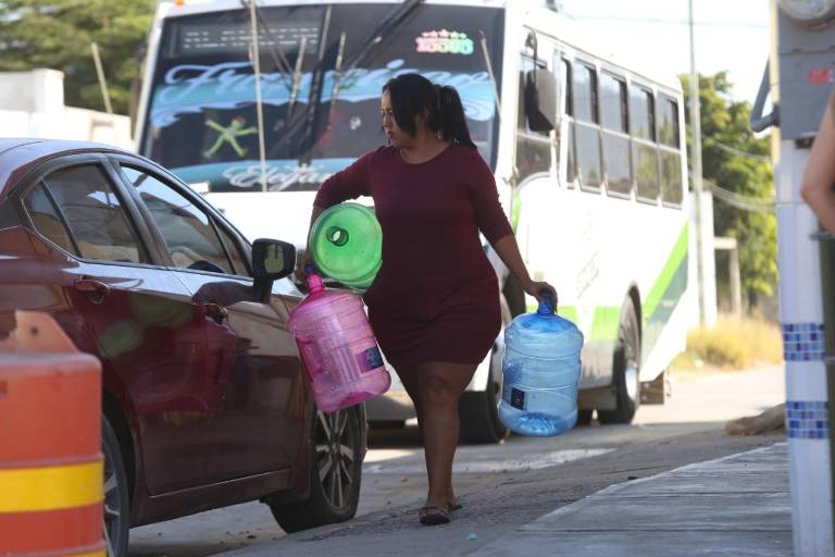 “He tenido que acarrear de mi casa porque allá tengo aljibe y aquí no, y yo no quiero tener pérdidas, así que espero que no dure mucho el desabasto”, expresó la dueña de un depósito de mariscos en la Colonia Juárez.