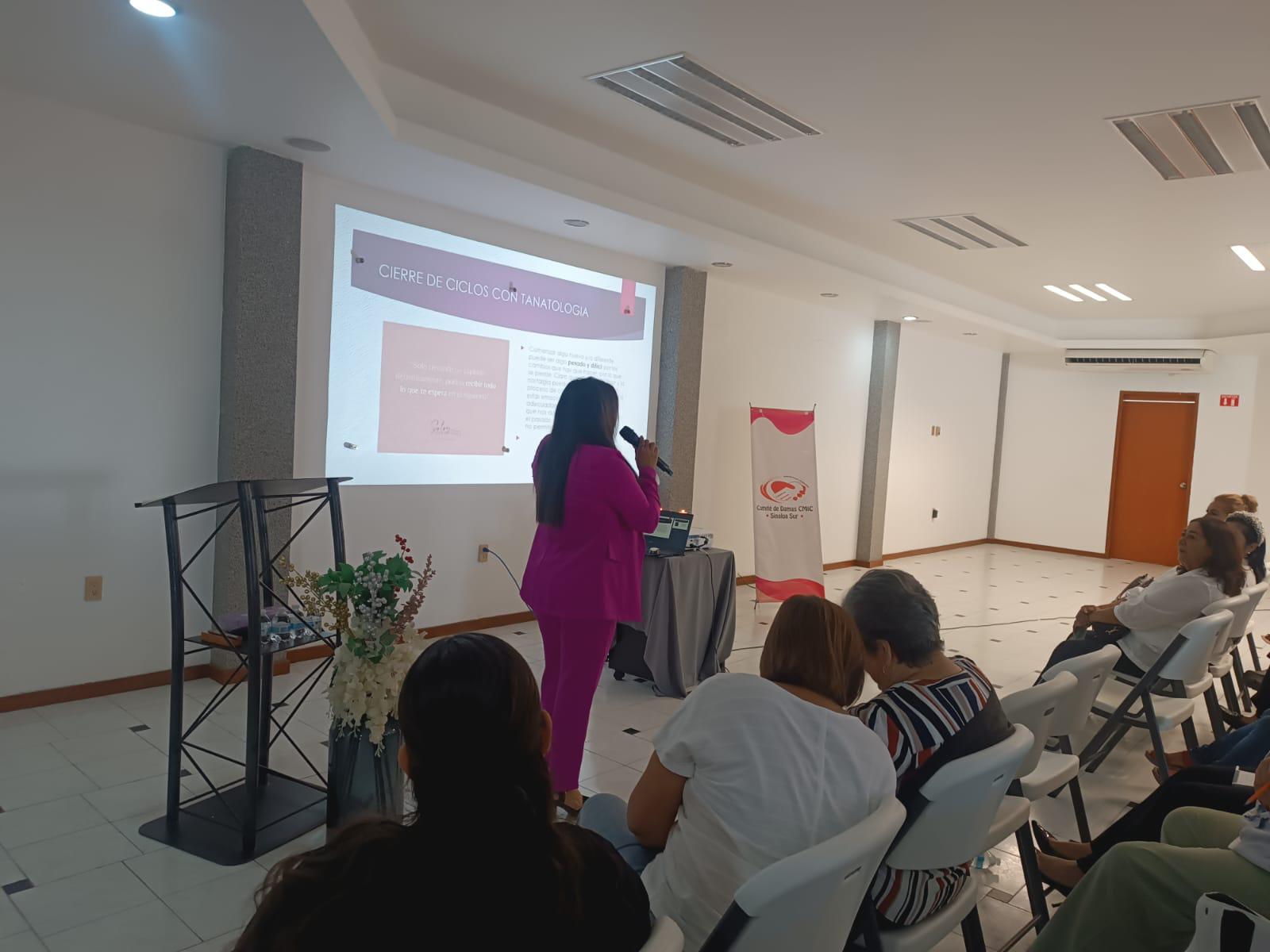 MAZATLÁN._ A través de una conferencia con causa impartida por la Psicoterapeuta Rosario Cristerna, el Comité de Damas de CMIC (Cámara Mexicana de la Industria de la Construcción) Sinaloa Sur, realizó su último actividad del año con una entrega de apoyos a personas con vulnerabilidad.