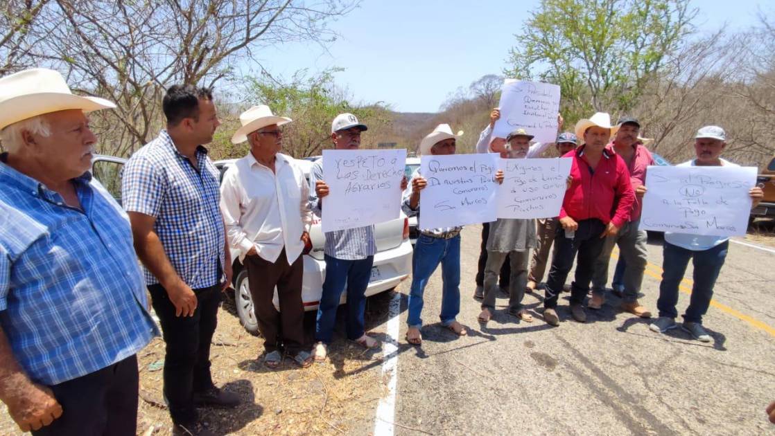Con cartulinas donde se leían frases como “Sí al progreso, no a la falta de pago. Comuneros de San Marcos”, “Queremos pago de nuestras parcelas comunales. San Marcos” y “Exigimos pago de nuestras tierras de uso común. Comuneros de san Marcos”, entre otras, un grupo de unos 10 comuneros esperaron entre las carreteras a El Recodo y a San Marcos, a que López Obrador saliera de supervisar la Presa Picachos para entregarle un escrito con su petición cerca de las 13:30 horas.