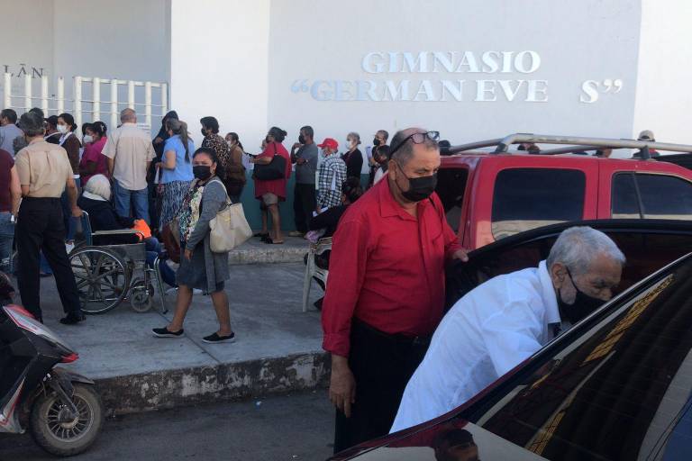 Las filas son largas, pues en el caso de la cancha Germán Evers, le da la vuelta a la cuadra, además de haber personas en la entrada que llegaron tarde y esperan se les de prioridad por estar en silla de ruedas o andaderas.