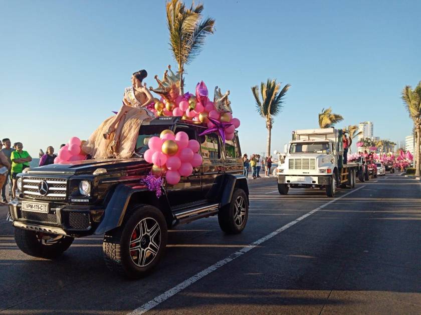 De nuevo y por segunda vez en lo que del año, los papaquis sonaron y anunciaban el paso de Carolina Pérez, actual Reina del Carnaval de Mazatlán e Ivanna Matamoros, Reina de los Juegos Florales 2022, quienes encabezaron el desfile de carros.