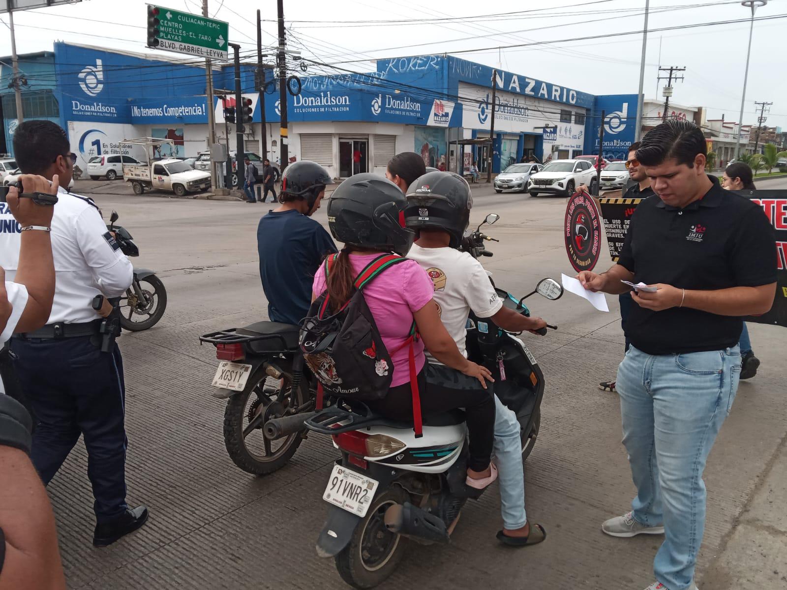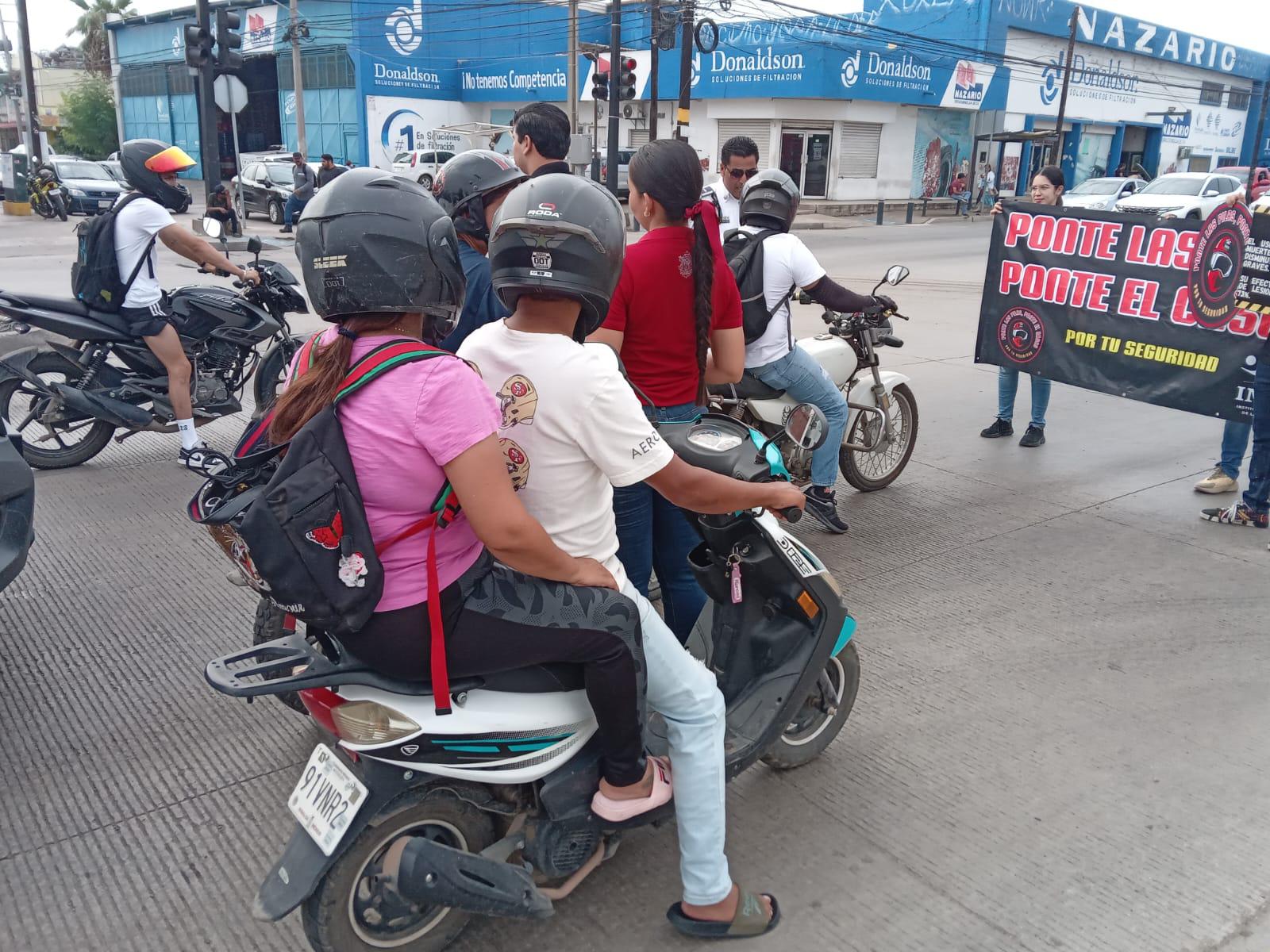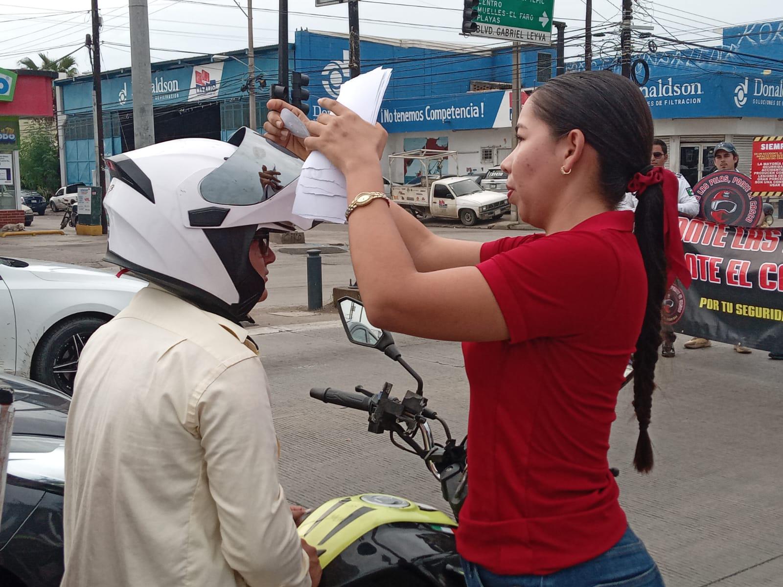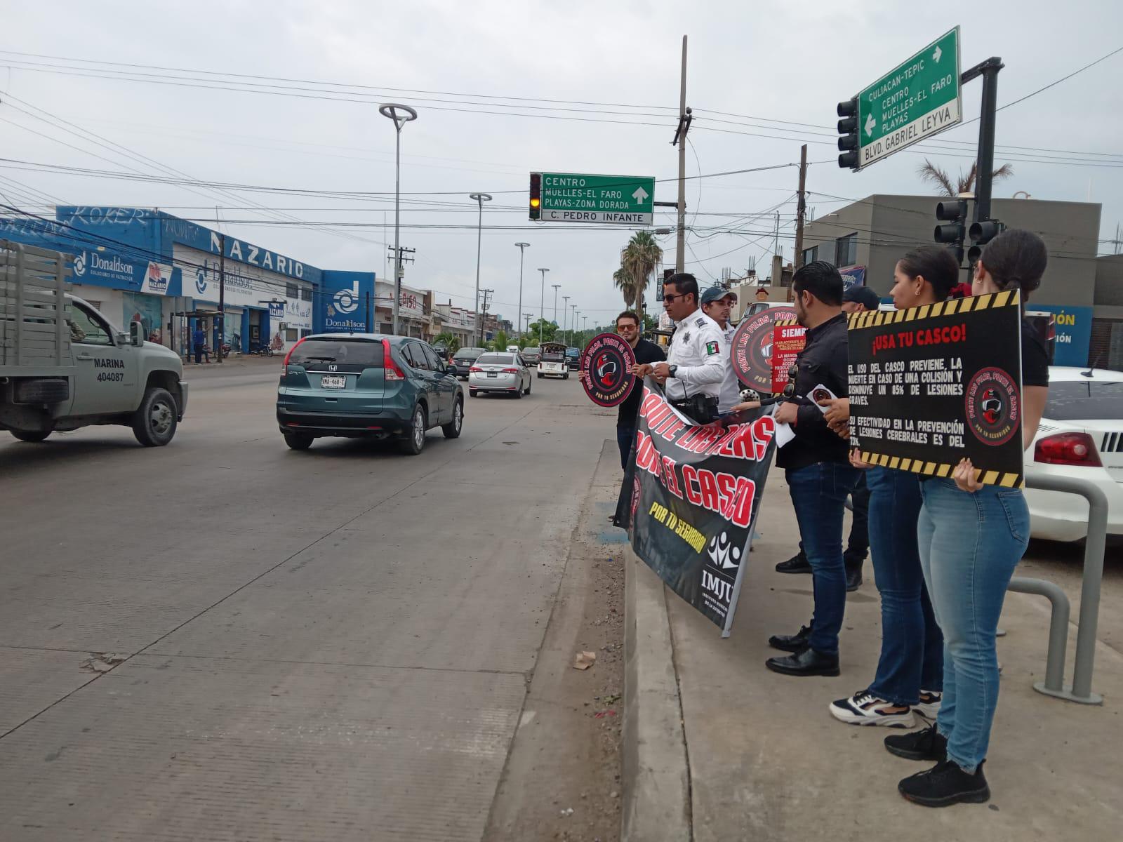 La campaña “Ponte las pilas, ponte el casco” fue puesta en marcha la mañana de este miércoles entre la avenida Gabriel Leyva y la calle Pedro Infante, para concientizar a los motociclistas a que usen el casco y hagan una conducción adecuada para prevenir accidentes y hechos que lamentar.