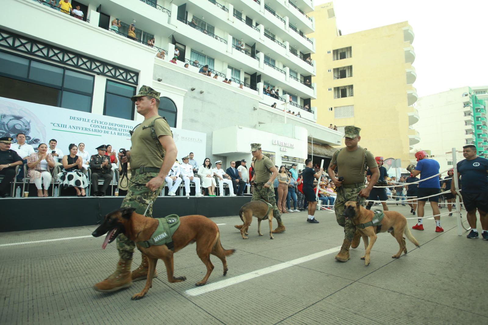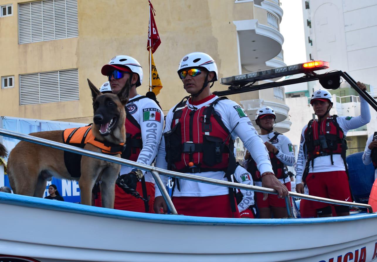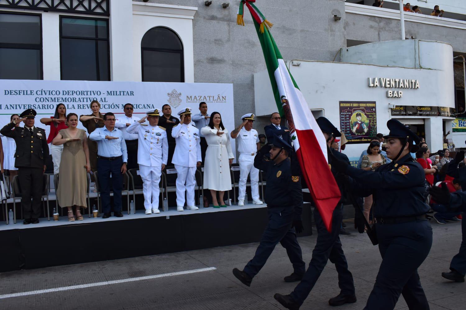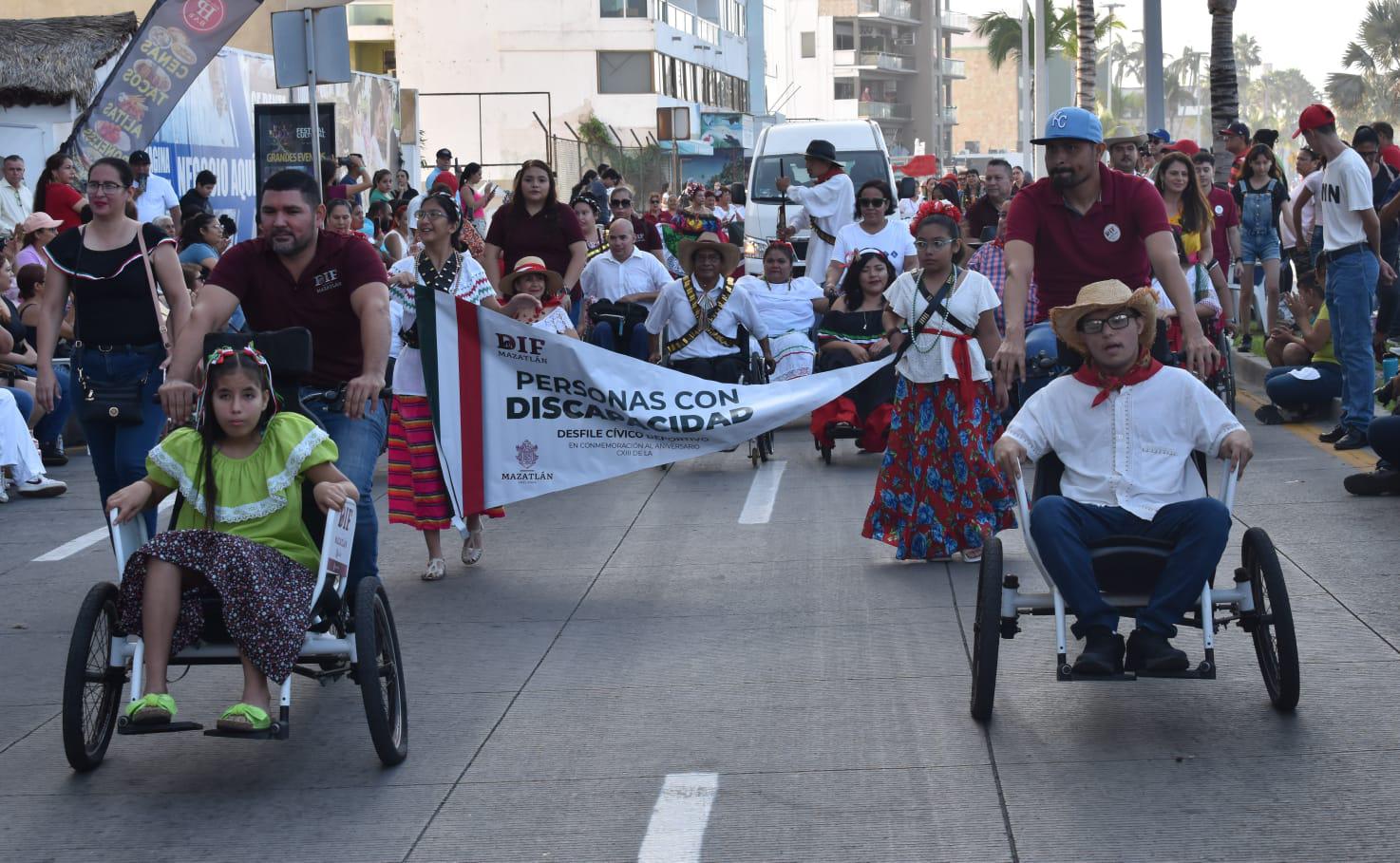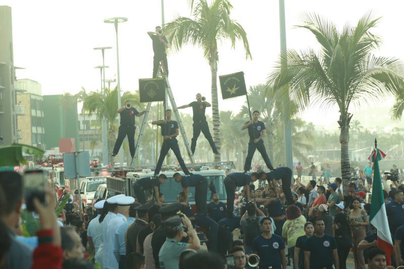 El desfile fue encabezado por DIF Mazatlán, seguidos de diversos grupos de adultos mayores, para dar paso a los cuerpos de auxilio integrados por elementos de Seguridad Pública, Tránsito Municipal, Escuadrón Acuático, Uneprevif, Protección Civil, Bomberos de Mazatlán, Cruz Roja, Bomberos Veteranos, la Guardia Nacional, la Tercera Región Militar y la Secretaría de Marina.