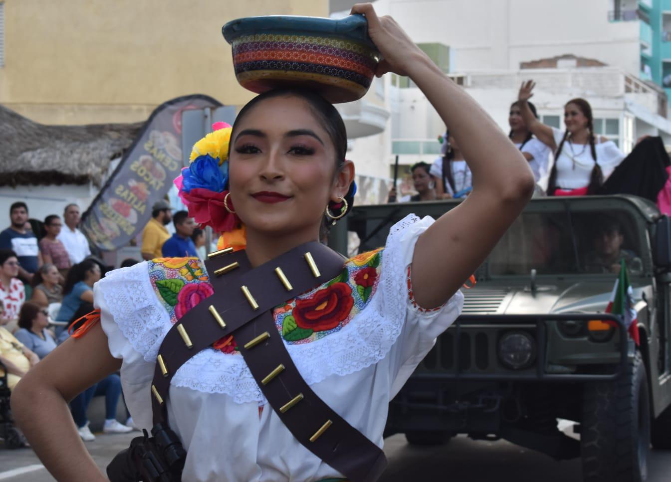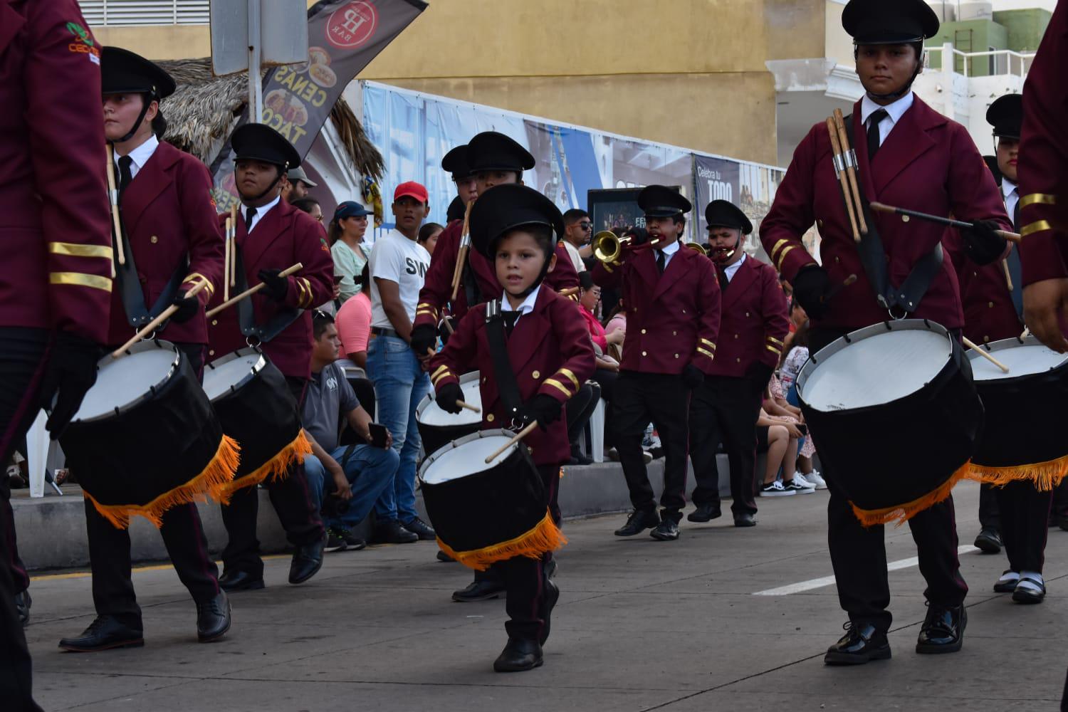 Los elementos más vistosos que se pudieron disfrutar en este desfile fueron un grupo de niñas y niños de la Tercera Región Militar, portando el uniforme de esta institución y el ya tradicional desfile del alumnado de la Escuela Náutica Mercante.