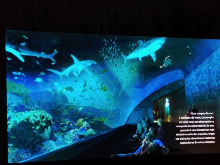 En el recorrido mostró las diferentes partes con las que contará el nuevo Acuario, así como las diferentes imágenes de cómo se contempla que sea ya al ser abierto al público y las diferentes especies con que contará en sus exhibiciones de Mar Profundo, Costa y Tierra y Bosque.