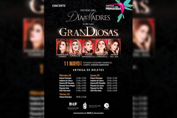 Un total de 16 mil boletos serán repartidos a las mujeres de Mazatlán para que asistan al concierto gratuito “Las GranDiosas”, este sábado 11 de mayo en el Estadio Teodoro Mariscal.