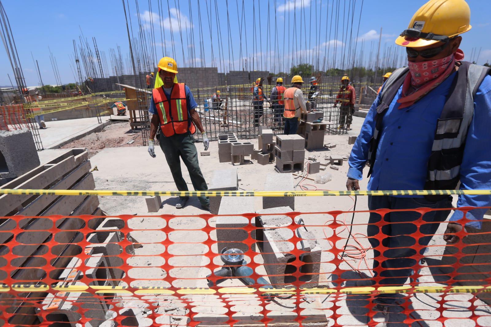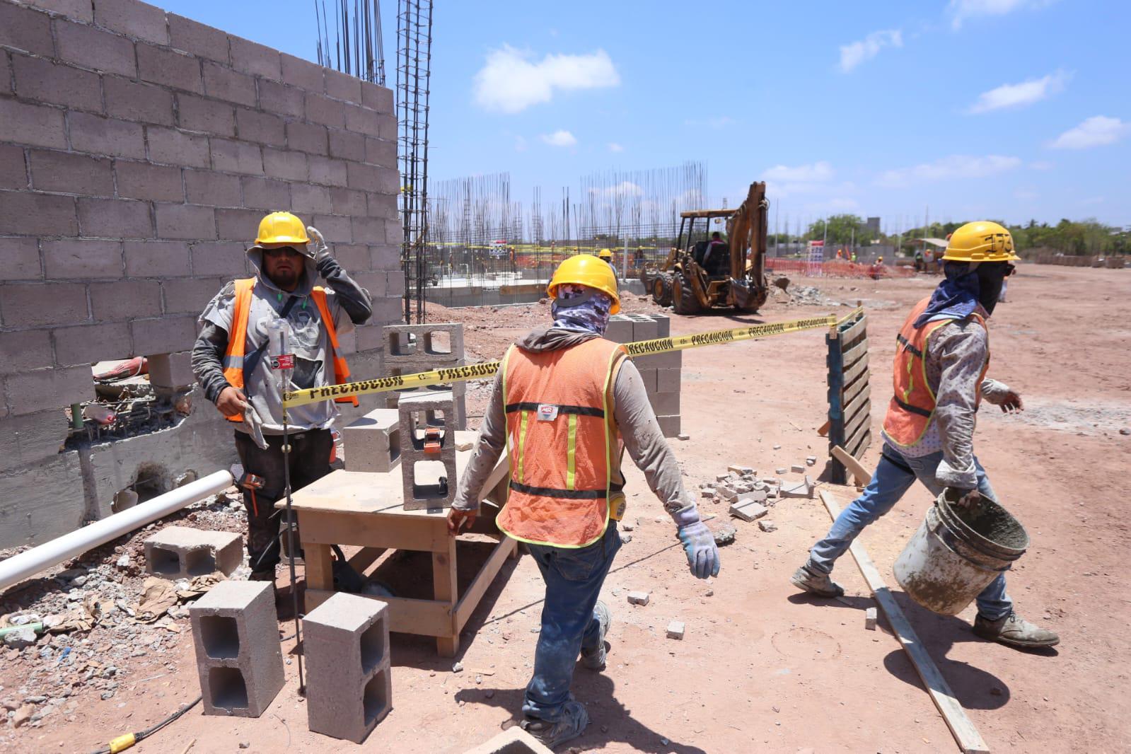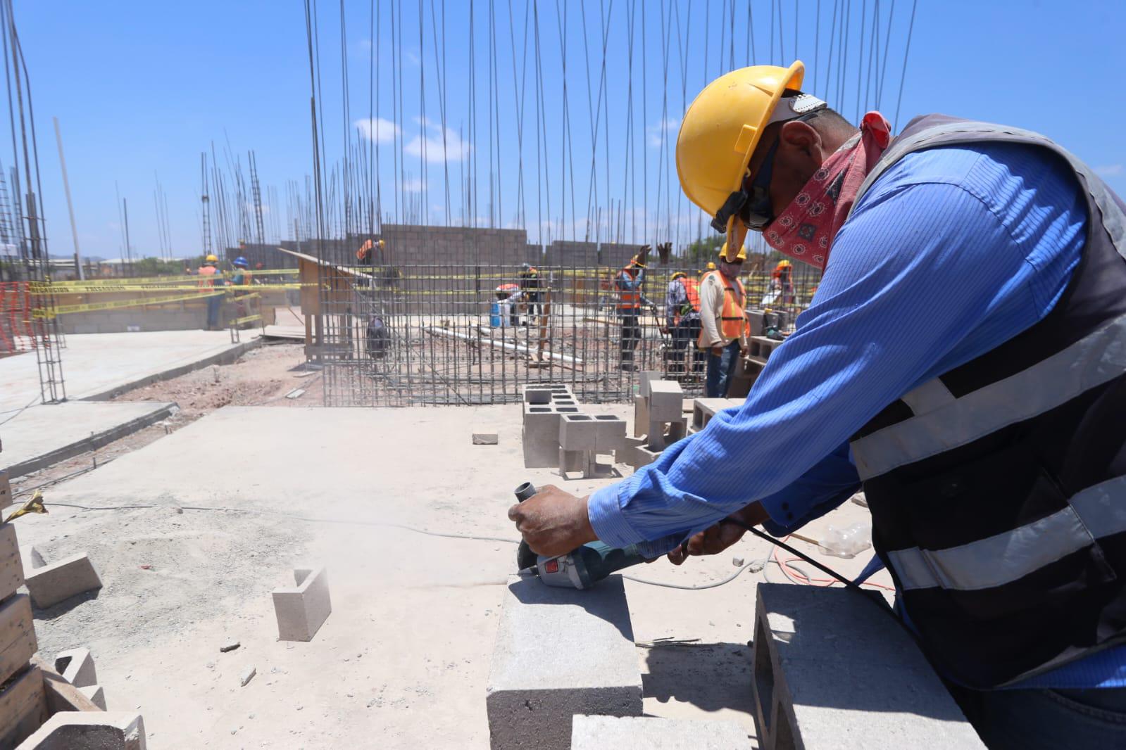 Pese a las altas temperaturas, de poco más de 30 grados, decenas de personas laboran en la construcción del CRIT Teletón Mazatlán, algunos pegando block, cortando varillas o levantando la barda perimetral, entre otras labores.